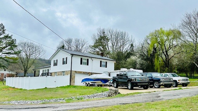 Nice 3BR/2BA home located in quiet neighborhood just outside the city limits of Carthage. Home is located on a spacious corner lot. Updates( just 2 years old) include new kitchen cabinets, granite countertops, appliances, metal roof, HVAC and ducts, windows, vanities, flooring, attic istorage, all new water lines, white vinyl privacy fence, and much more. Large Bedrooms, Primary Bedroom has 2 closests, gas fireplace in living room. Home features a 28x14 attached covered patio to enjoy those morning cups of coffee while watching the deer and beautiful scenic foliage. Large walk-in Laundry Room. Basement garage is spacious enough for several vehicles, currently used as a garage/mancave. The two driveways, one on each side of the house,provides ample parking space for all your guest. Minutes From Cordell Hull's Defeated Creek, a nature's lover's retreat; offering, hiking, fishing, camping, kayaking, boating or just relaxing by the campfire.